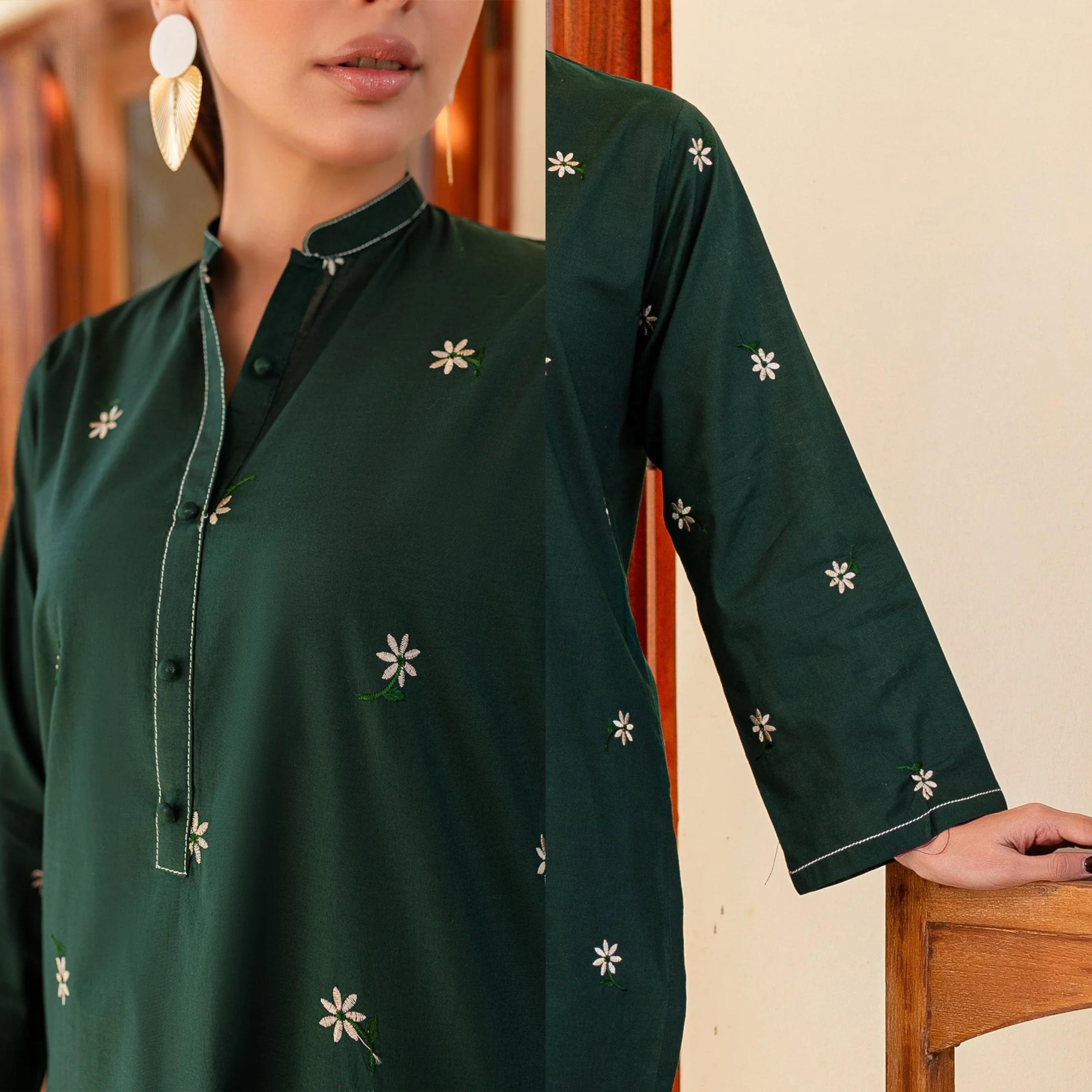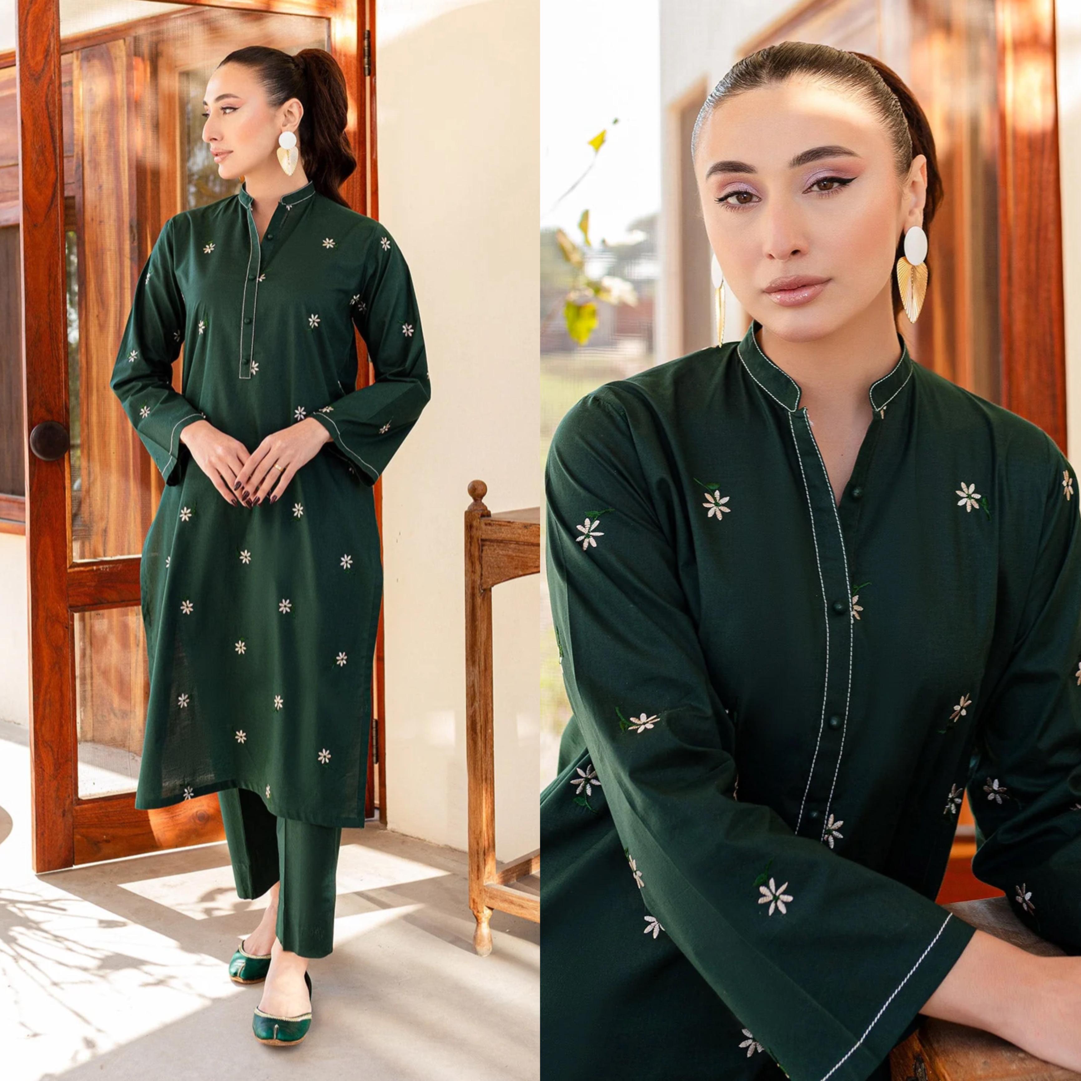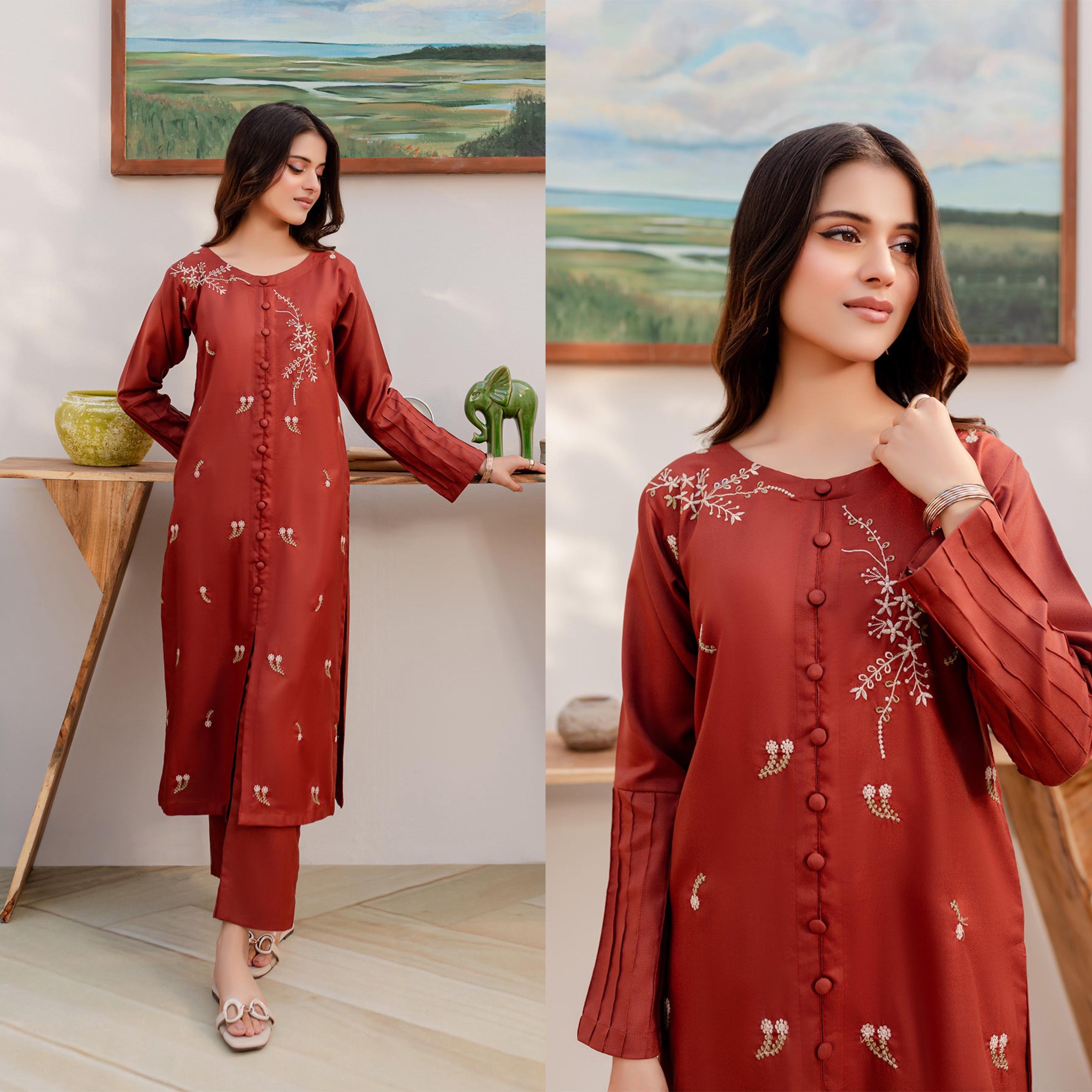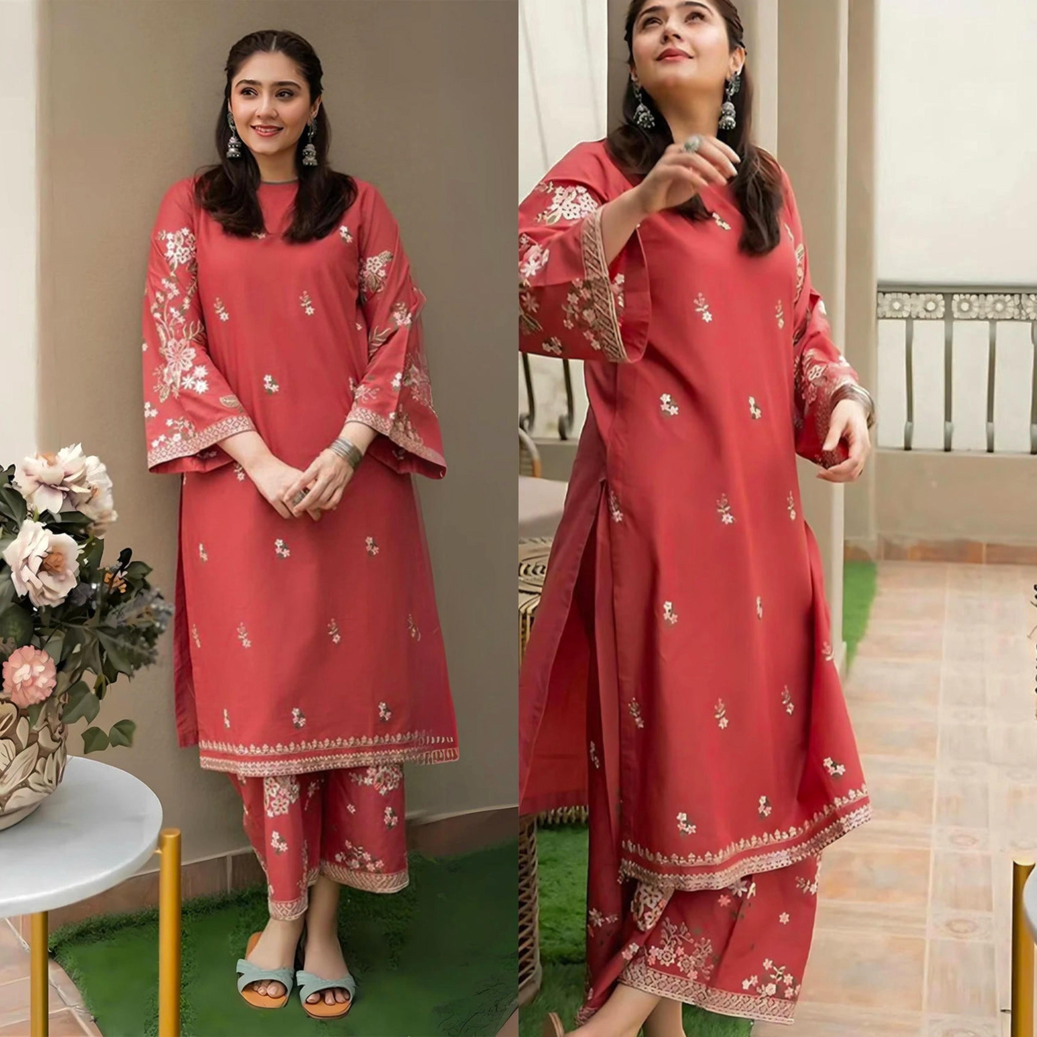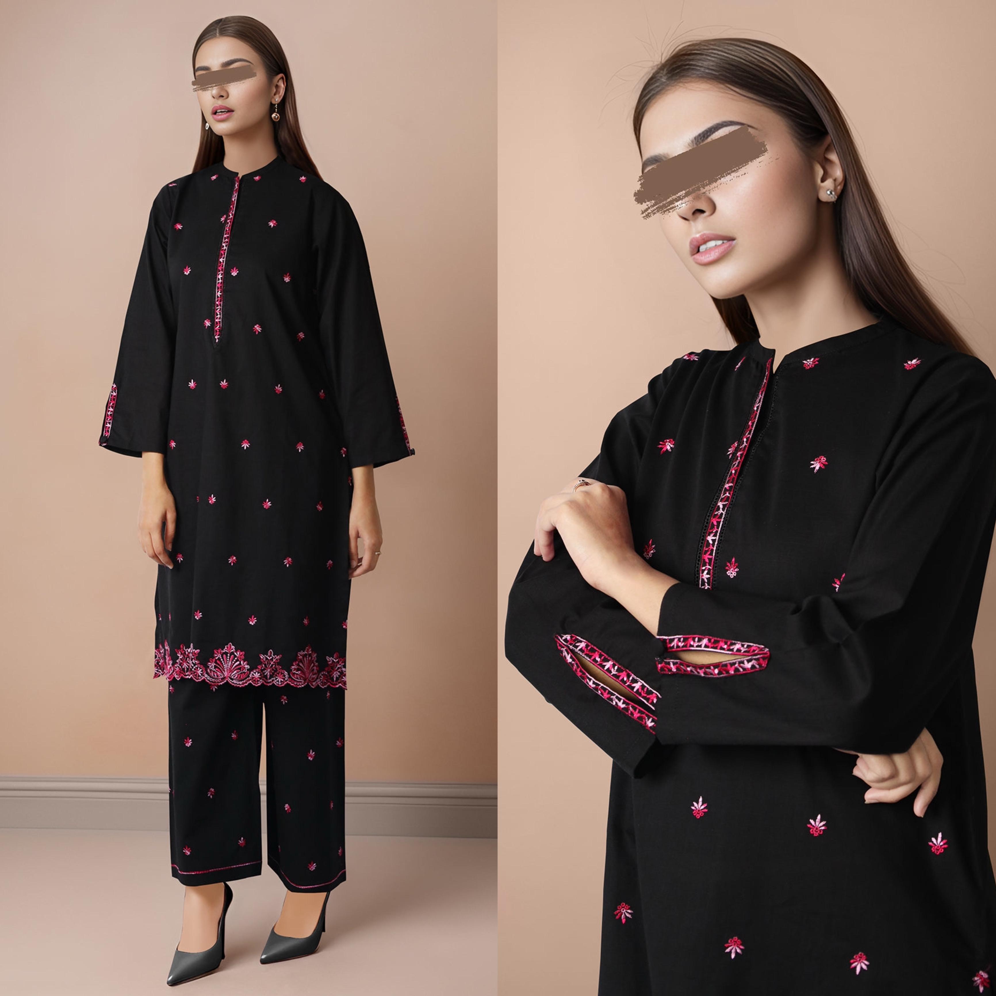 THIS 2 PIECE SUIT MADE ON PURE COTTON FABRIC FRONT & BACK ALL OVER EMBROIDERED TROUSER ALL OVER EMBROIDERED